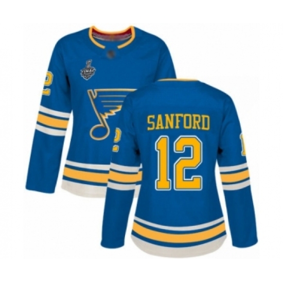 >Women's St. Louis Blues #12 Zach Sanford Authentic Navy Blue Alternate 2019 Stanley Cup Final Bound Hockey Jersey
