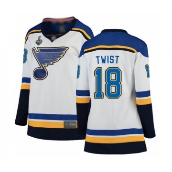 Women's St. Louis Blues #18 Tony Twist Authentic White Away 2019 Stanley Cup Final Bound Hockey Jersey