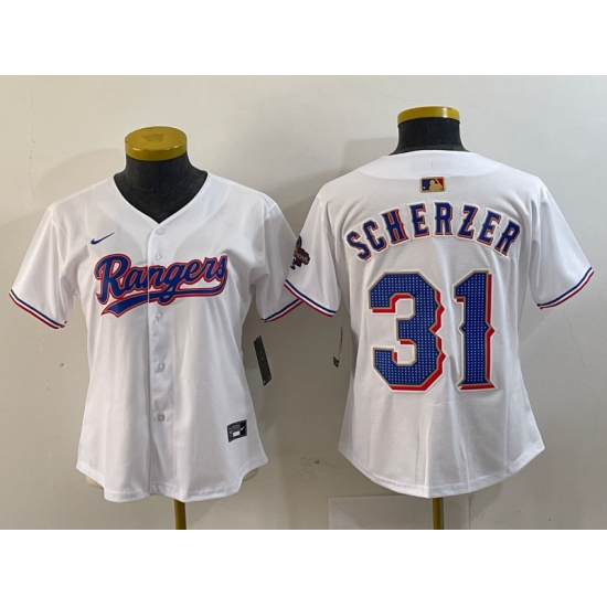 Women's Texas Rangers #31 Max Scherzer White 2024 Gold Collection Limited Cool Base Jersey