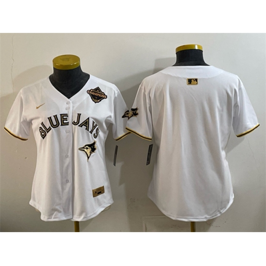 >Women's Toronto Blue Jays Blank White Gold 2025 American League Champions Limited Stitched Baseball Jersey(Run Small)