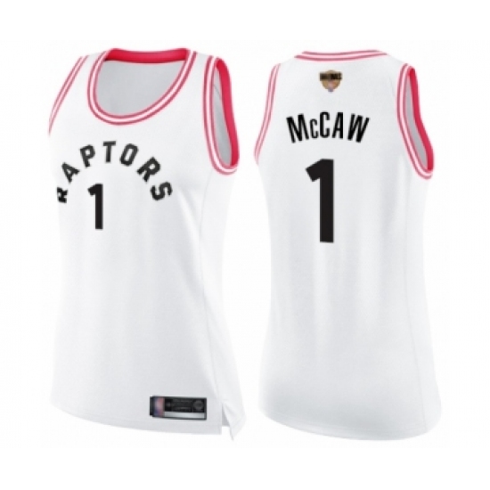 Women's Toronto Raptors #1 Patrick McCaw Swingman White Pink Fashion 2019 Basketball Finals Bound Jersey