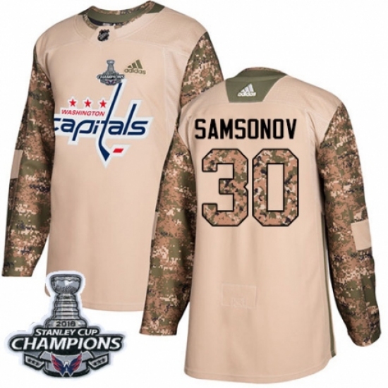 Women's Adidas Washington Capitals #30 Ilya Samsonov Authentic Camo Veterans Day Practice 2018 Stanley Cup Final Champions NHL Jersey