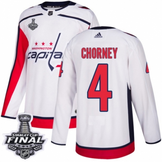 Youth Adidas Washington Capitals #4 Taylor Chorney Authentic White Away 2018 Stanley Cup Final NHL Jersey