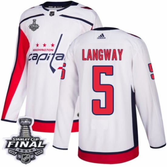 Men's Adidas Washington Capitals #5 Rod Langway Authentic White Away 2018 Stanley Cup Final NHL Jersey