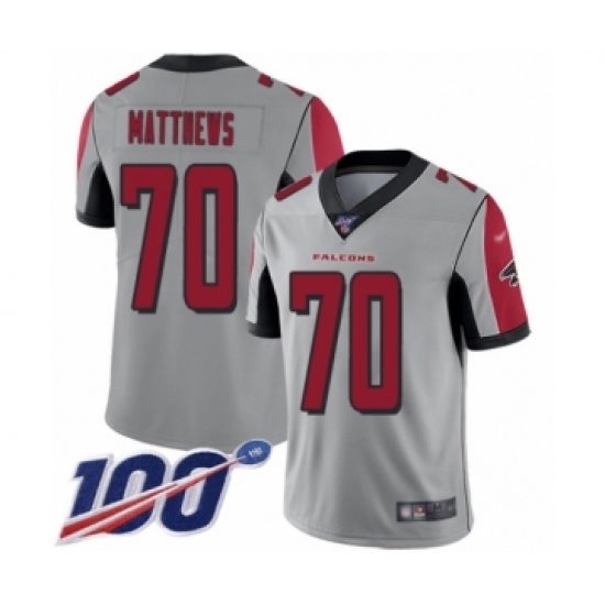>Youth Atlanta Falcons #70 Jake Matthews Limited Silver Inverted Legend 100th Season Football Jersey