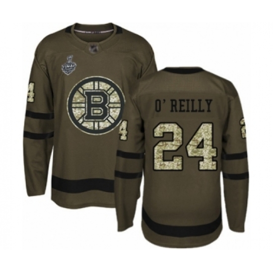>Youth Boston Bruins #24 Terry O'Reilly Authentic Green Salute to Service 2019 Stanley Cup Final Bound Hockey Jersey