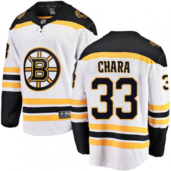 Youth Boston Bruins #33 Zdeno Chara Authentic White Away Fanatics Branded Breakaway NHL Jersey