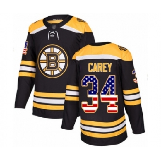 >Youth Boston Bruins #34 Paul Carey Authentic Black USA Flag Fashion Hockey Jersey