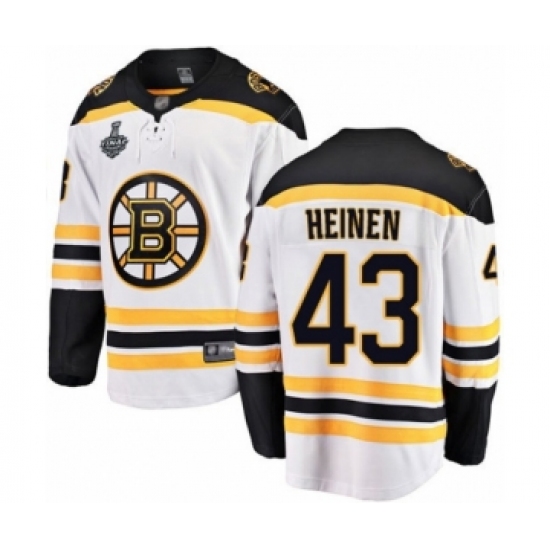 Youth Boston Bruins #43 Danton Heinen Authentic White Away Fanatics Branded Breakaway 2019 Stanley Cup Final Bound Hockey Jersey