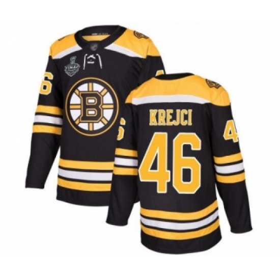>Youth Boston Bruins #46 David Krejci Authentic Black Home 2019 Stanley Cup Final Bound Hockey Jersey
