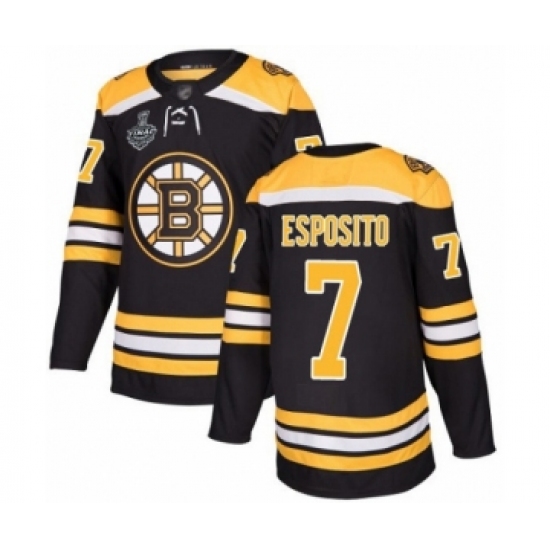 >Youth Boston Bruins #7 Phil Esposito Authentic Black Home 2019 Stanley Cup Final Bound Hockey Jersey