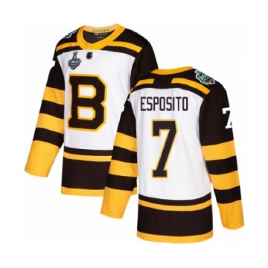 >Youth Boston Bruins #7 Phil Esposito Authentic White Winter Classic 2019 Stanley Cup Final Bound Hockey Jersey