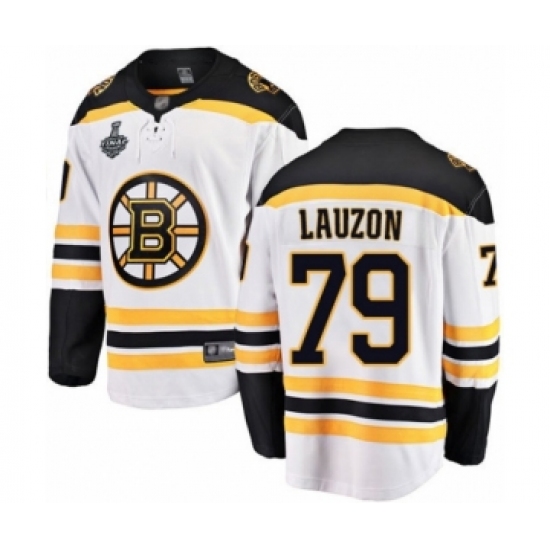 Men's Boston Bruins #79 Jeremy Lauzon Authentic White Away 2019 Stanley Cup Final Bound Hockey Jersey