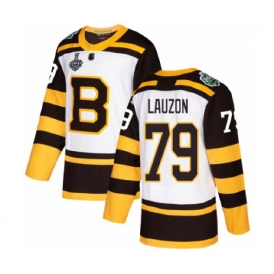 >Youth Boston Bruins #79 Jeremy Lauzon Authentic White Winter Classic 2019 Stanley Cup Final Bound Hockey Jersey