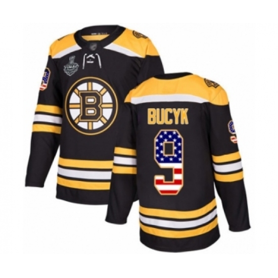 Men's Boston Bruins #9 Johnny Bucyk Authentic Black Home 2019 Stanley Cup Final Bound Hockey Jersey