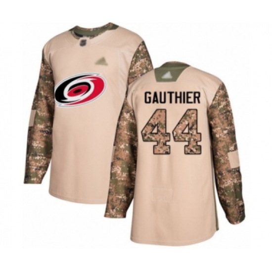 >Youth Carolina Hurricanes #44 Julien Gauthier Authentic Camo Veterans Day Practice Hockey Jersey