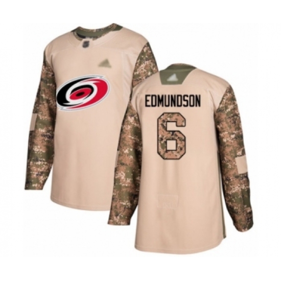 Men's Carolina Hurricanes #6 Joel Edmundson Authentic Camo Veterans Day Practice Hockey Jersey