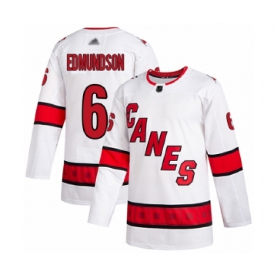 >Youth Carolina Hurricanes #6 Joel Edmundson Authentic White Away Hockey Jersey