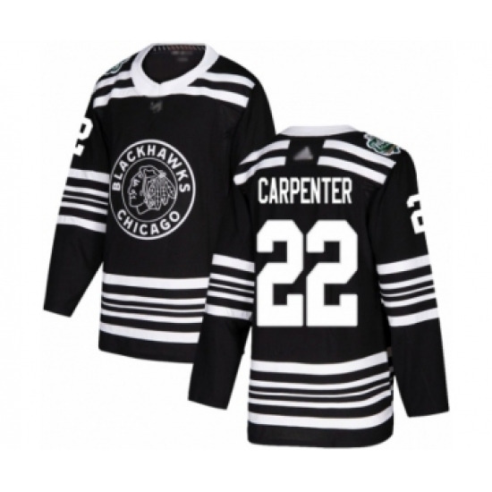 >Youth Chicago Blackhawks #22 Ryan Carpenter Authentic Black 2019 Winter Classic Hockey Jersey