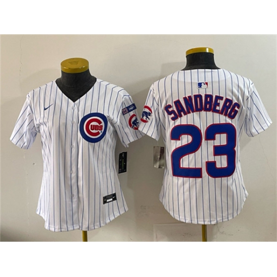 Women's Chicago Cubs #23 Ryne Sandberg White Home Limited Stitched Jersey