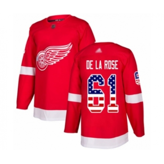Women's Detroit Red Wings #61 Jacob de la Rose Authentic Red USA Flag Fashion Hockey Jersey