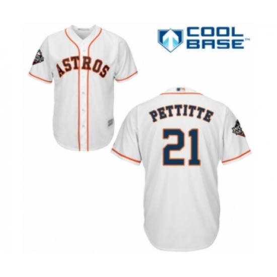 >Youth Houston Astros #21 Andy Pettitte Authentic White Home Cool Base 2019 World Series Bound Baseball Jersey
