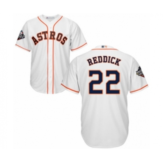 Youth Houston Astros #22 Josh Reddick Authentic White Home Cool Base 2019 World Series Bound Baseball Jersey