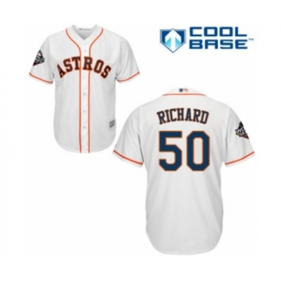 Youth Houston Astros #50 J.R. Richard Authentic White Home Cool Base 2019 World Series Bound Baseball Jersey