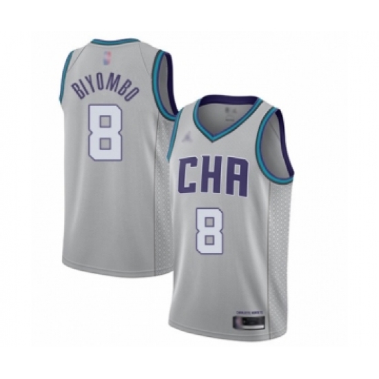 Youth Jordan Charlotte Hornets #8 Bismack Biyombo Swingman Gray Basketball Jersey - 2019 20 City Edition