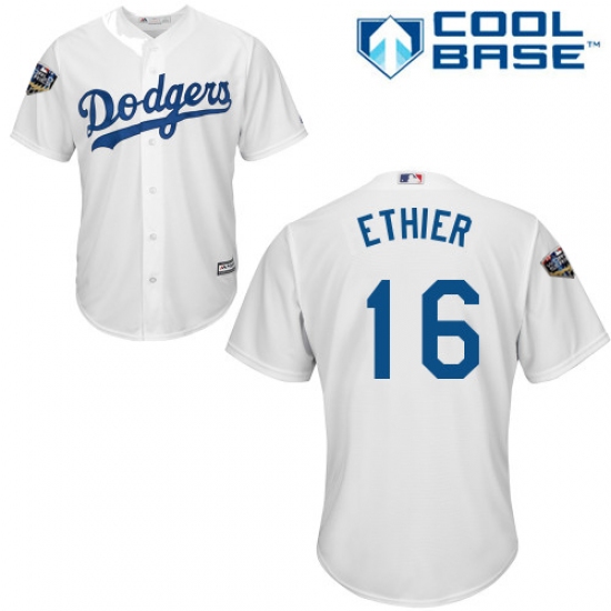 Youth Majestic Los Angeles Dodgers #16 Andre Ethier Authentic White Home Cool Base 2018 World Series MLB Jersey