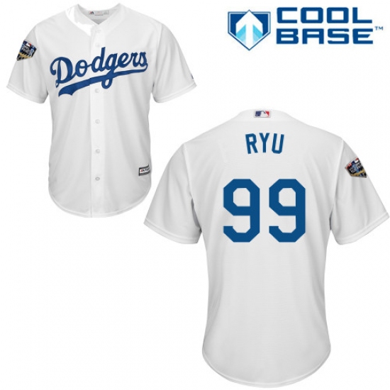 Youth Majestic Los Angeles Dodgers #99 Hyun-Jin Ryu Authentic White Home Cool Base 2018 World Series MLB Jersey