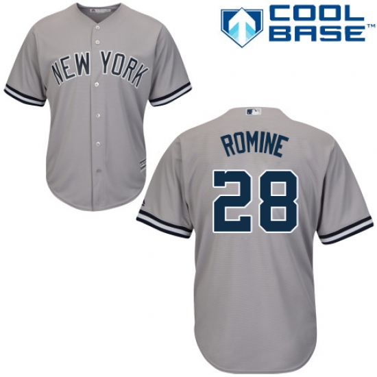 >Youth Majestic New York Yankees #28 Austin Romine Replica Grey Road MLB Jersey
