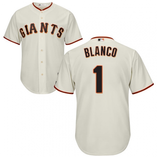 Home>MLB>San Francisco Giants>Gregor Blanco>Youth Majestic San Francisco Giants #1 Gregor Blanco Authentic Cream Home Cool Base MLB Jersey