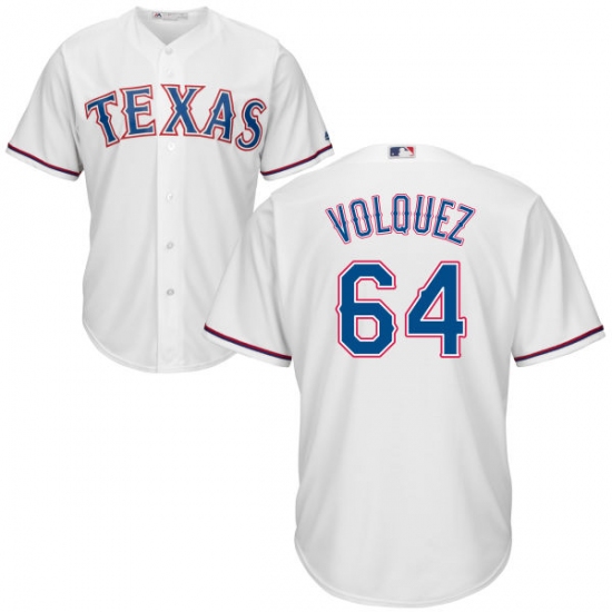 Home>MLB>Texas Rangers>Edinson Volquez>Youth Majestic Texas Rangers #64 Edinson Volquez Authentic White Home Cool Base MLB Jersey