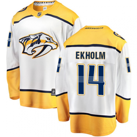 Home>NHL>Nashville Predators>Mattias Ekholm>Youth Nashville Predators #14 Mattias Ekholm Fanatics Branded White Away Breakaway NHL Jersey