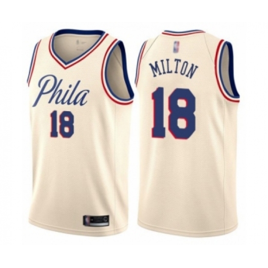 Men's Philadelphia 76ers #18 Shake Milton Authentic Cream Basketball Jersey - City Edition