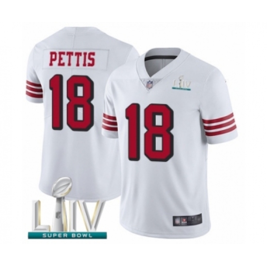 >Youth San Francisco 49ers #18 Dante Pettis Limited White Rush Vapor Untouchable Super Bowl LIV Bound Football Jersey
