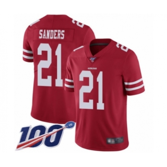 >Youth San Francisco 49ers #21 Deion Sanders Red Team Color Vapor Untouchable Limited Player 100th Season Football Jersey