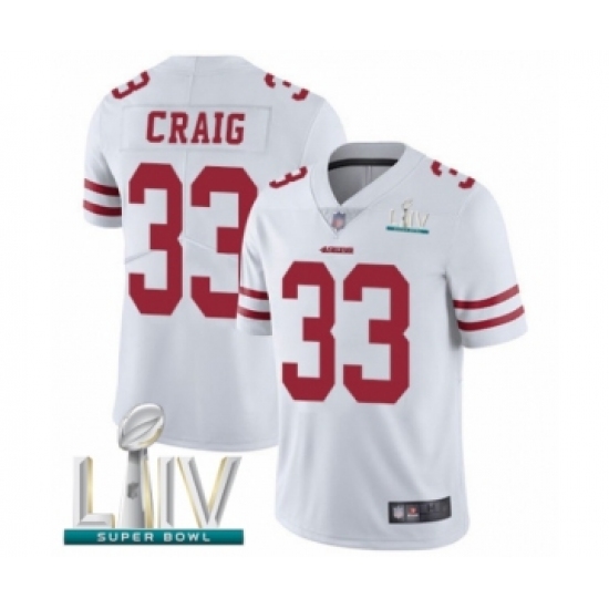 Men's San Francisco 49ers #33 Roger Craig White Vapor Untouchable Limited Player Super Bowl LIV Bound Football Jersey