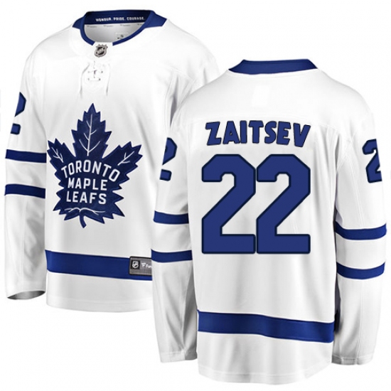 Home>NHL>Toronto Maple Leafs>Nikita Zaitsev>Youth Toronto Maple Leafs #22 Nikita Zaitsev Fanatics Branded White Away Breakaway NHL Jersey