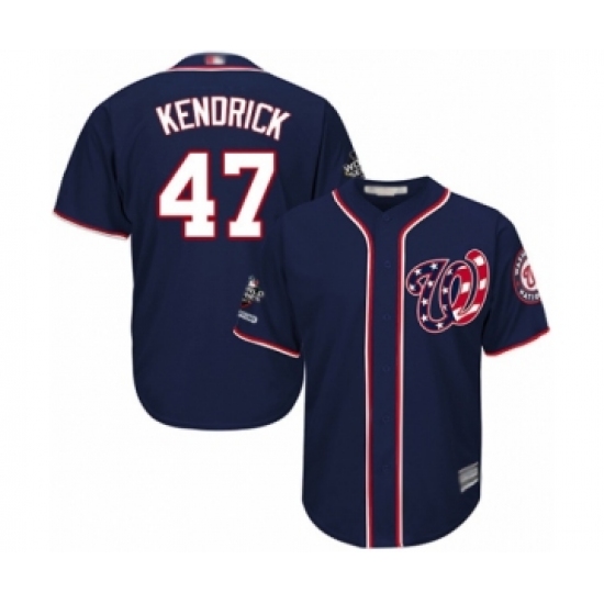 Youth Washington Nationals #47 Howie Kendrick Authentic Navy Blue Alternate 2 Cool Base 2019 World Series Champions Baseball Jersey