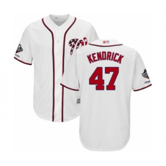 Youth Washington Nationals #47 Howie Kendrick Authentic White Home Cool Base 2019 World Series Champions Baseball Jersey