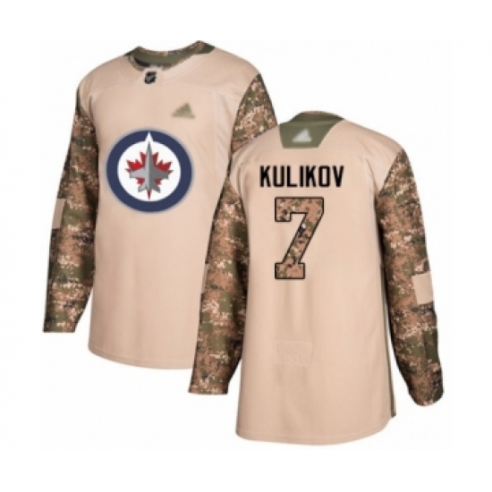 >Youth Winnipeg Jets #7 Dmitry Kulikov Authentic Camo Veterans Day Practice Hockey Jersey