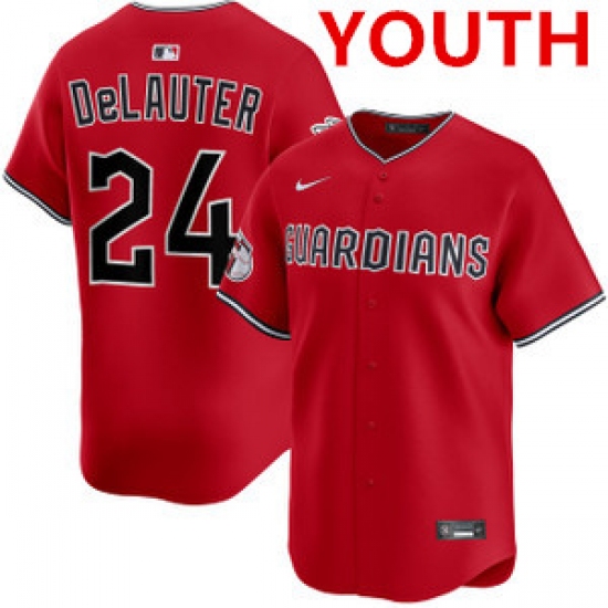 Youth cleveland guardians #24 chase delauter red cool base stitched baseball jersey